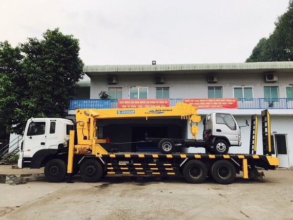 Bán xe cẩu tự hành Soosan 10 tấn gắn trên nền xe Huyndai HD320 chở máy công trình